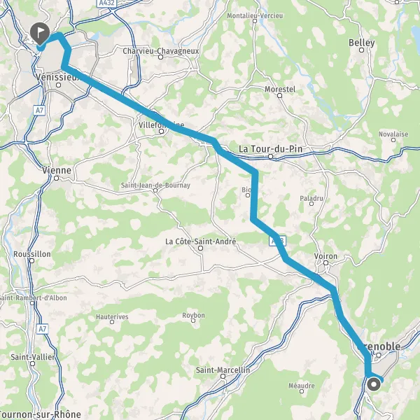 Prendre à droite et rejoindre A43 E711 E70. Continuer sur 34 kilomètres