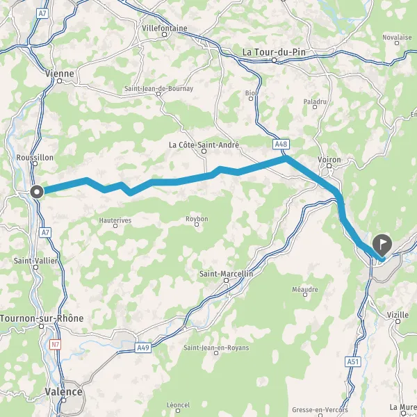 Prendre à droite et rejoindre A48. Continuer sur 4,8 kilomètres