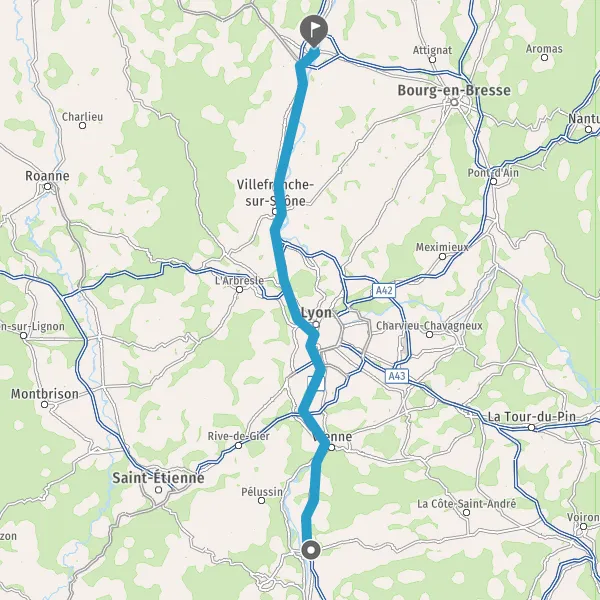 Prendre à droite et rejoindre A7. Continuer sur 46 kilomètres