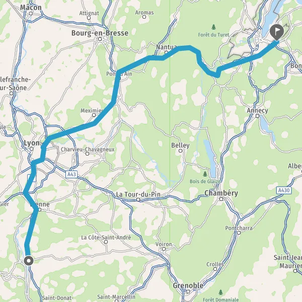 Prendre à droite et rejoindre A42. Continuer sur 4,3 kilomètres