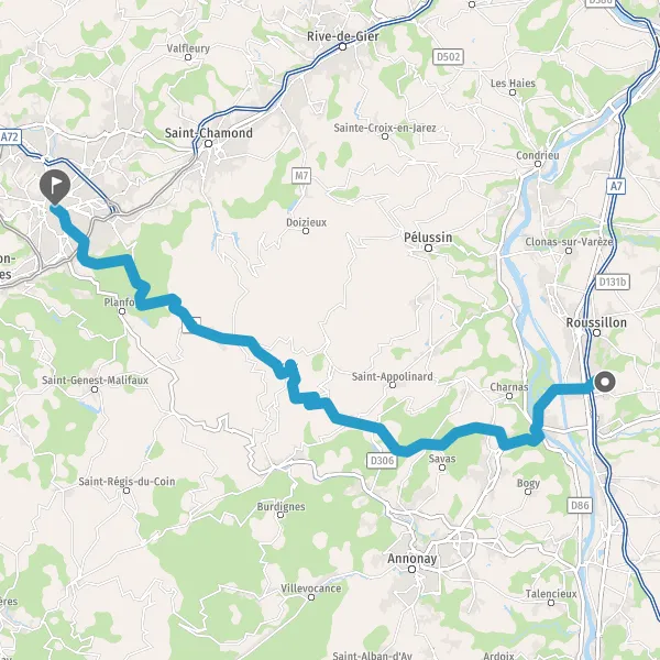 Au rond-point, prendre la 2ème sortie sur D8 (Route de Saint-Étienne) et continuer sur 14 kilomètres