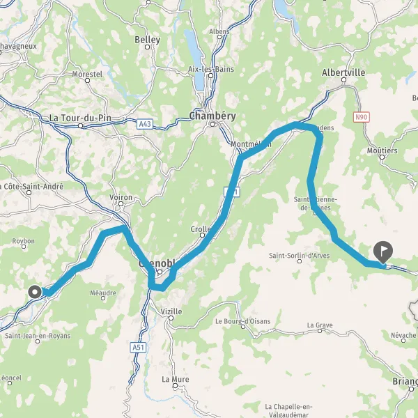 Prendre à droite et rejoindre A43 E70. Continuer sur 51 kilomètres