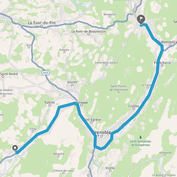 Prendre à gauche et rejoindre A48. Continuer sur 10 kilomètres