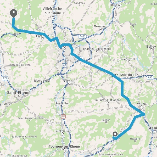 Prendre à droite et rejoindre A43 E711 E70. Continuer sur 34 kilomètres
