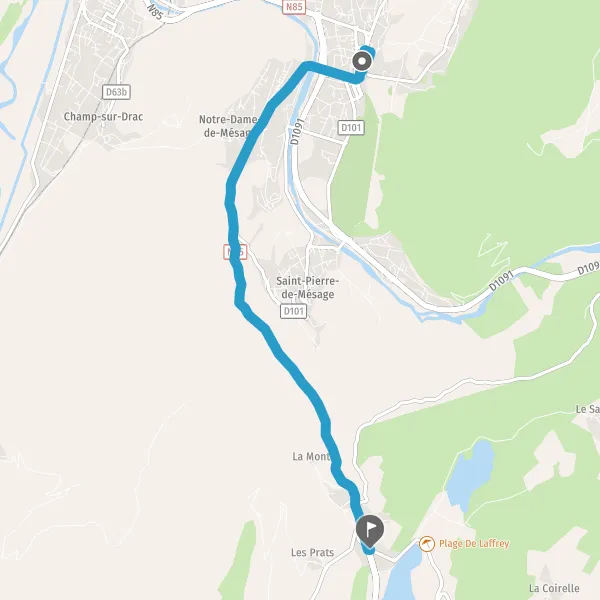 | Distance en voiture | 8,2 km à 8,8 km |