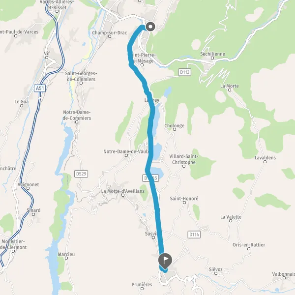 | Distance en voiture | 21,8 km à 22,5 km |