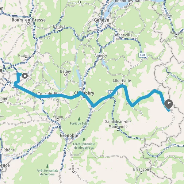Prendre à droite et rejoindre A43. Continuer sur 19 kilomètres