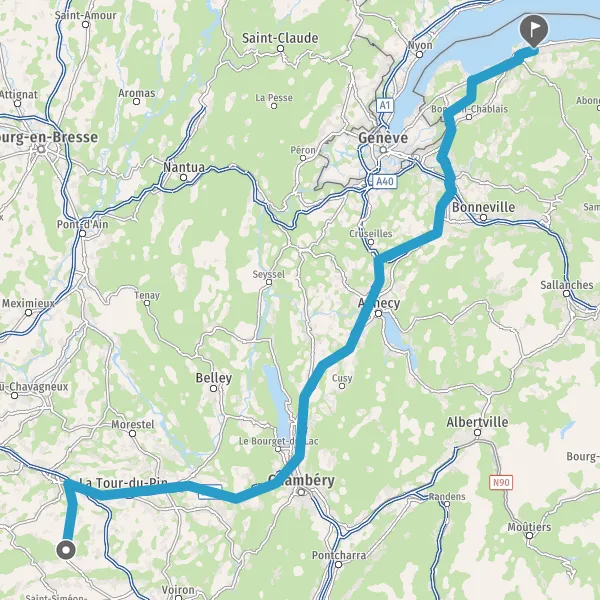 Prendre à droite et rejoindre A43. Continuer sur 3,8 kilomètres