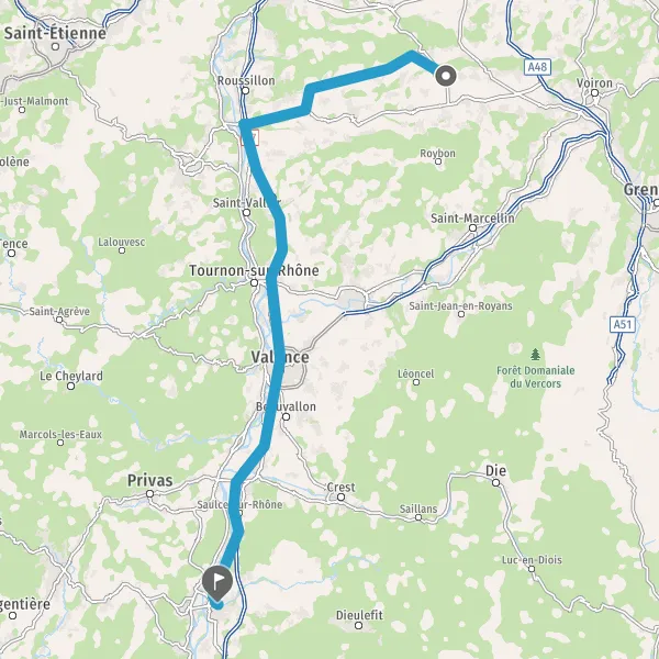 Prendre à droite et rejoindre A49. Continuer sur 71 kilomètres