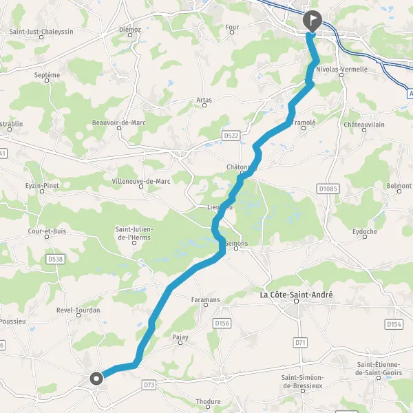 Tourner à droite sur D522 (Route de Saint-Jean-de-Bournay) et continuer sur 3,9 kilomètres