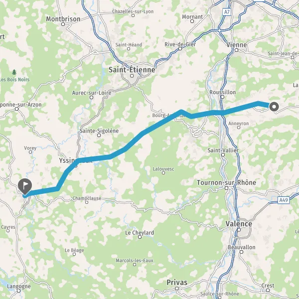 Au rond-point, prendre la 2ème sortie sur D105 (Route d'Yssingeaux) et continuer sur 14 kilomètres