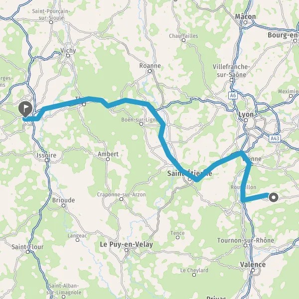 Prendre à droite et rejoindre A72. Continuer sur 53 kilomètres