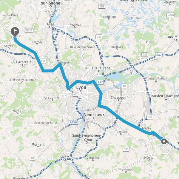 Continuer et rejoindre D383 (Boulevard Laurent Bonnevay). Continuer sur 6,3 kilomètres