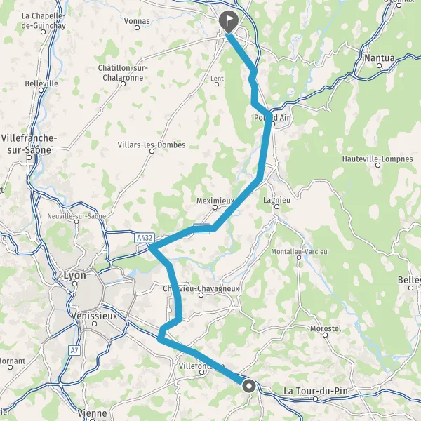 Prendre à droite et rejoindre A432. Continuer sur 21 kilomètres