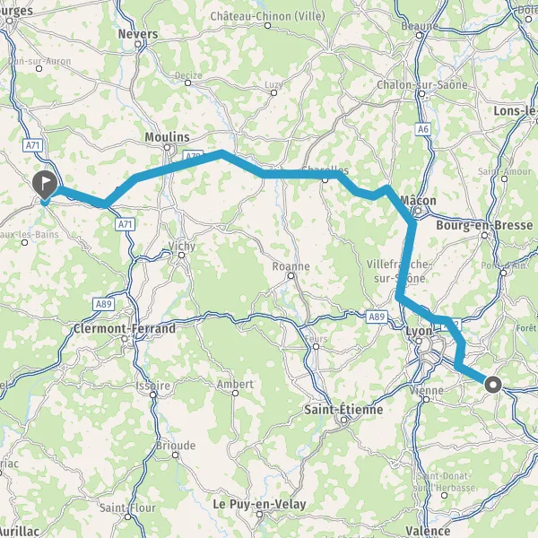 Continuer et rejoindre A89 E70. Continuer sur 83 kilomètres