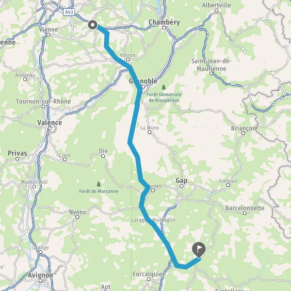 Prendre à droite et rejoindre A43. Continuer sur 3,8 kilomètres