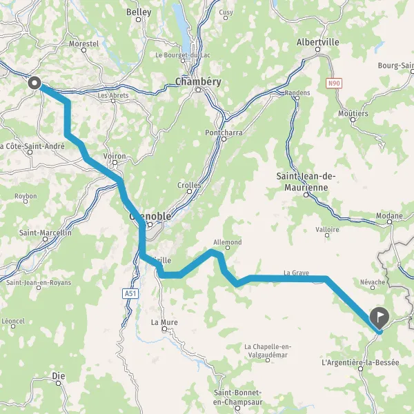 Prendre à droite et rejoindre A48. Continuer sur 51 kilomètres