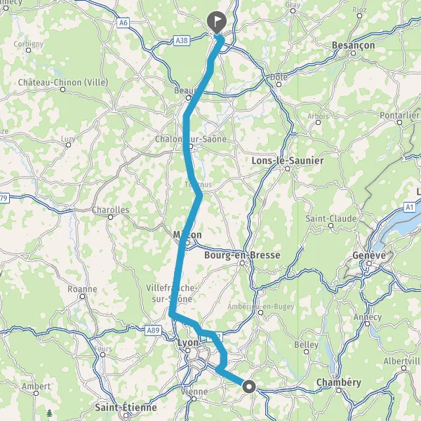 Prendre à droite et rejoindre A43 E711 E70. Continuer sur 16 kilomètres