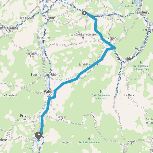 Prendre à droite et rejoindre A43. Continuer sur 3,8 kilomètres