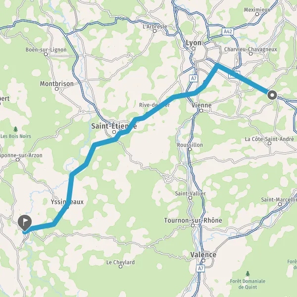 Prendre à gauche et rejoindre A46 E15 E70. Continuer sur 21 kilomètres
