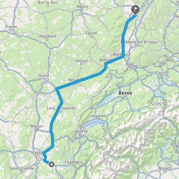 Prendre à droite et rejoindre A36 E60. Continuer sur 185 kilomètres