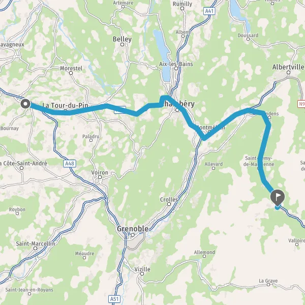 Prendre à droite et rejoindre A43 E70. Continuer sur 38 kilomètres