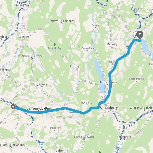 Prendre à droite et rejoindre A43 E70. Continuer sur 8,8 kilomètres