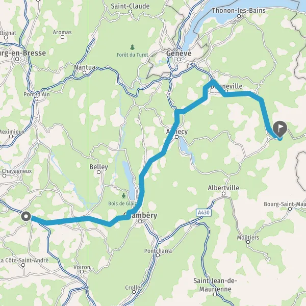 Prendre à droite et rejoindre A43. Continuer sur 3,8 kilomètres