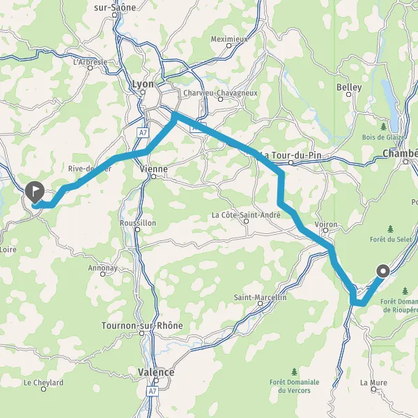 Prendre à gauche et rejoindre A46 E15 E70. Continuer sur 21 kilomètres