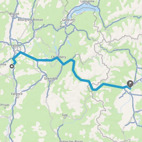 Continuer et rejoindre N201 E712 E70 (Avenue du Bourget-du-Lac). Continuer sur 16 kilomètres