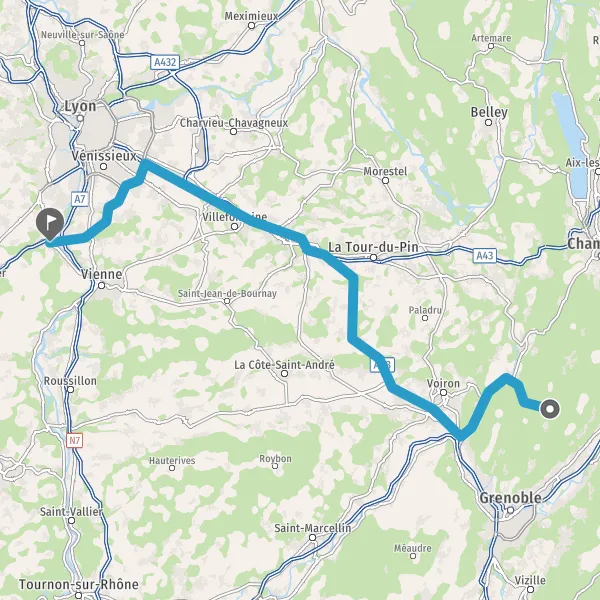 Prendre à gauche et rejoindre A46 E15 E70. Continuer sur 21 kilomètres
