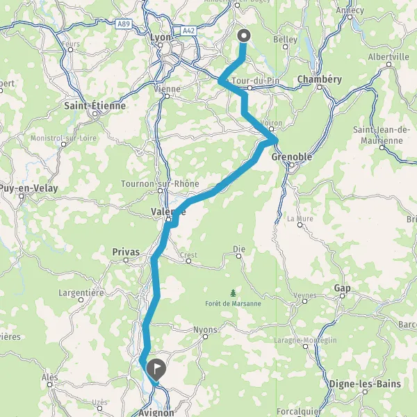 Prendre à droite et rejoindre A48. Continuer sur 42 kilomètres
