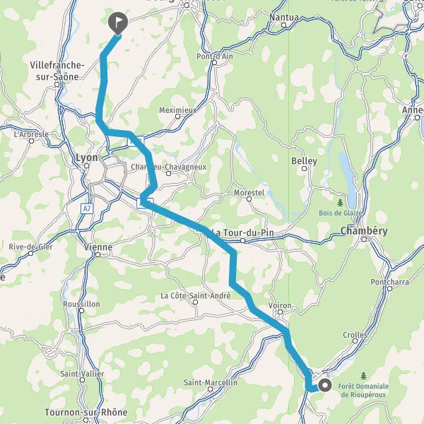 Prendre à droite et rejoindre A43 E711 E70. Continuer sur 26 kilomètres