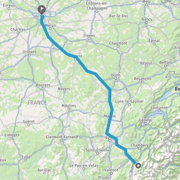 Prendre à droite et rejoindre A6. Continuer sur 294 kilomètres