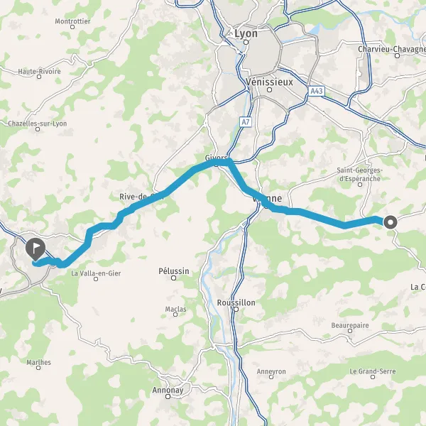 Prendre à droite et rejoindre A47. Continuer sur 30 kilomètres