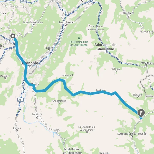 Tourner légèrement à droite sur D1091 (Route de l'Oisans) et continuer sur 2,4 kilomètres