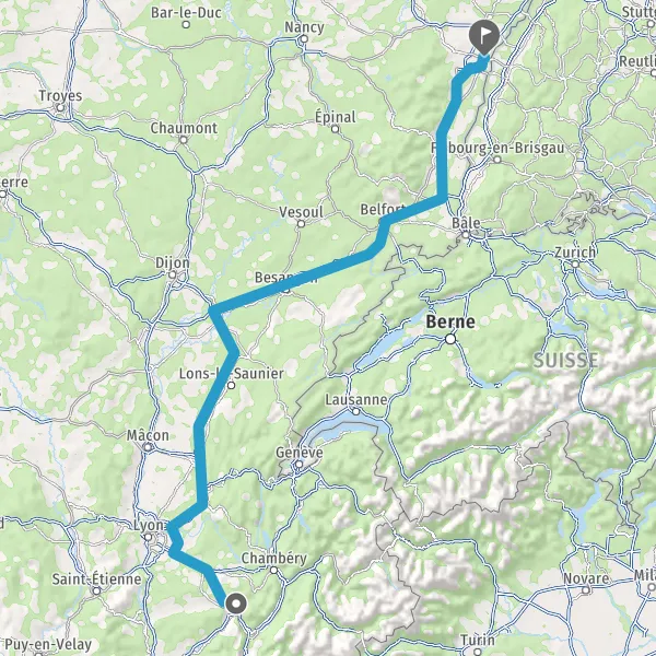 Prendre à droite et rejoindre A36 E60. Continuer sur 135 kilomètres