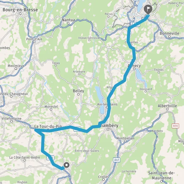 Prendre à droite et rejoindre A43 E70. Continuer sur 47 kilomètres