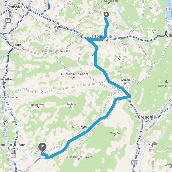 Prendre à droite et rejoindre A49. Continuer sur 56 kilomètres