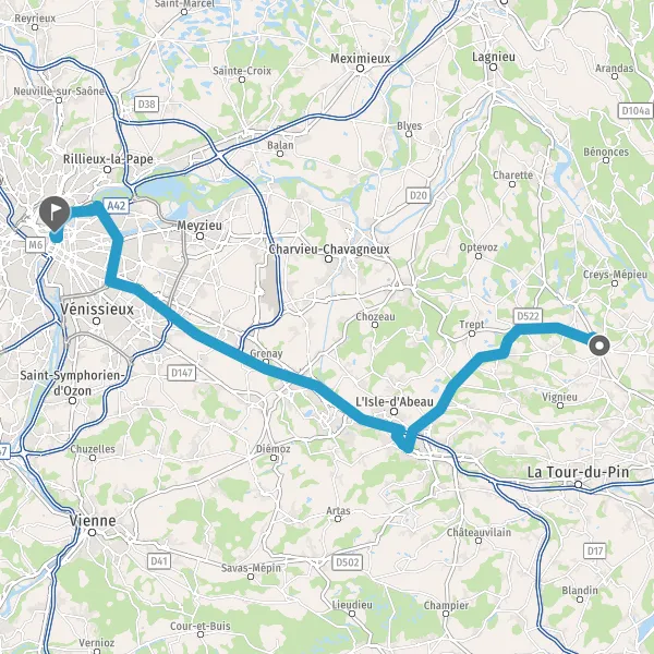 Continuer et rejoindre D383 (Boulevard Laurent Bonnevay). Continuer sur 6,3 kilomètres