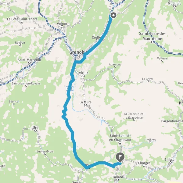 Prendre à droite et rejoindre N85 D1085 (Route de Laffrey). Continuer sur 6 kilomètres