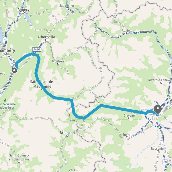 Prendre à droite et rejoindre A43 E70. Continuer sur 19 kilomètres