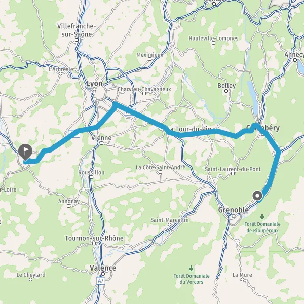 Prendre à gauche et rejoindre A46 E15 E70. Continuer sur 21 kilomètres