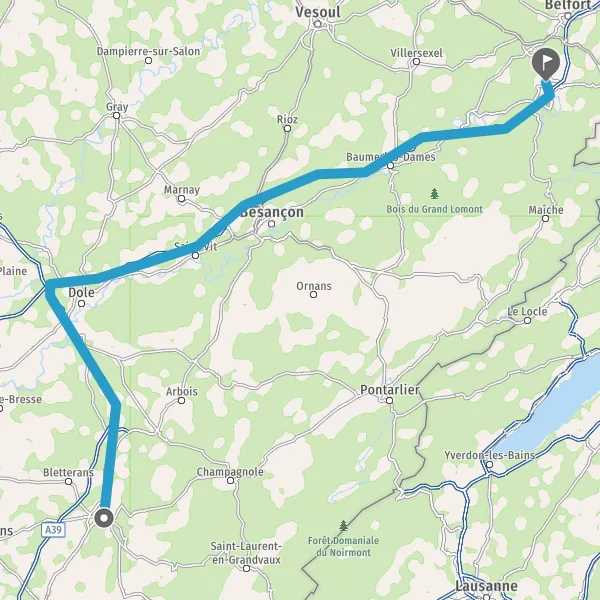 Prendre à droite et rejoindre A39. Continuer sur 35 kilomètres