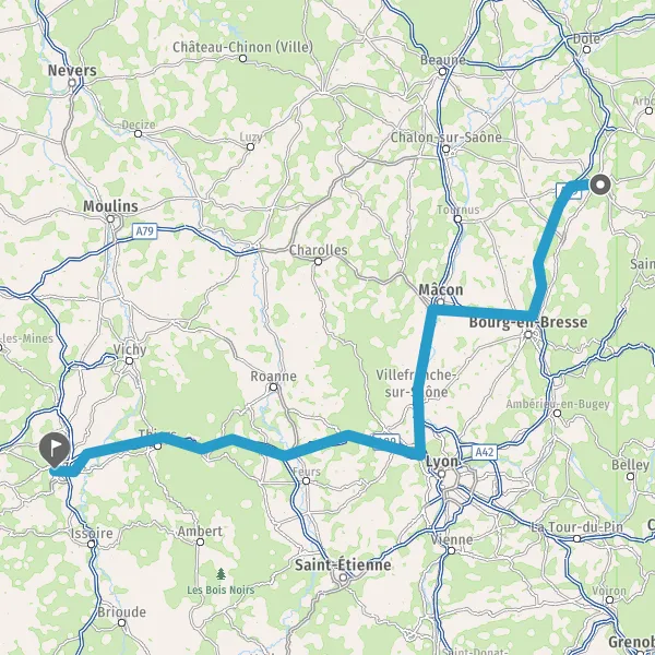 Continuer et rejoindre A89 E70. Continuer sur 77 kilomètres