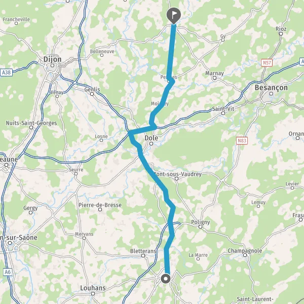 Prendre à droite et rejoindre A39. Continuer sur 35 kilomètres