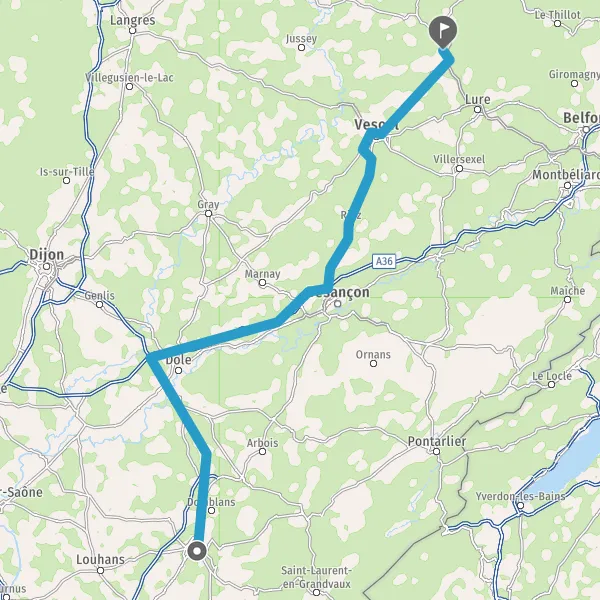 Prendre à droite et rejoindre A36 E60. Continuer sur 51 kilomètres