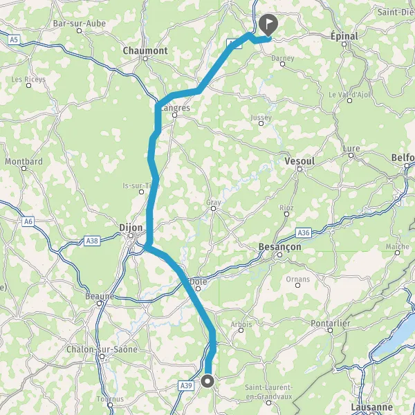 Prendre à droite et rejoindre A39. Continuer sur 62 kilomètres