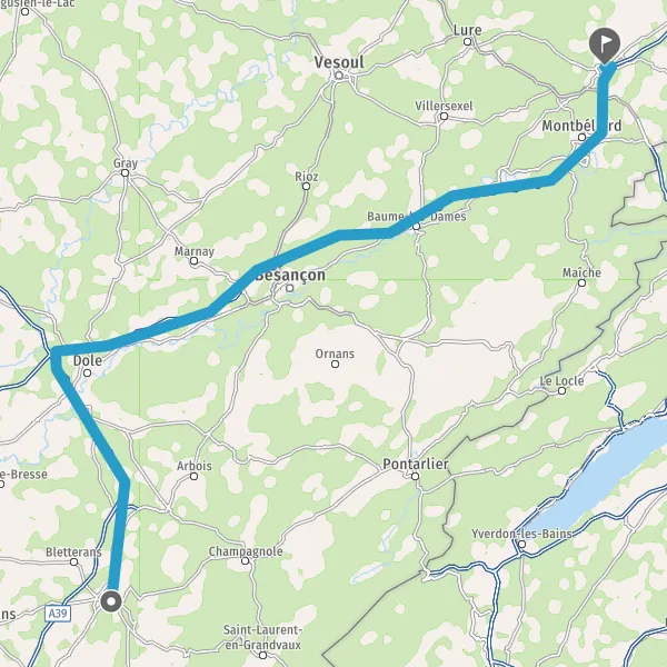 Prendre à droite et rejoindre A39. Continuer sur 35 kilomètres