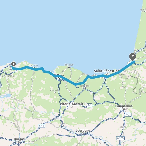 Prendre à droite et rejoindre AP-1 AP-1 AP-8 E-80 E-70 E-70 E-5 E-5. Continuer sur 20 kilomètres